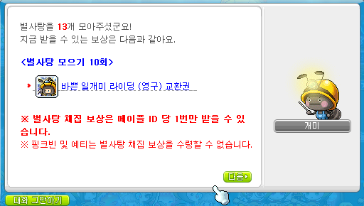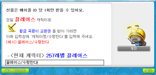 모든 보상은 메이플 ID당 1회만 수령 가능하고, 월드 내 나의 캐릭터 간 이동만 가능합니다.