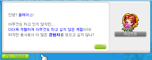 카산드라 말대로 [아무것도 안 했는데] 이벤트는 아무것도 안해도 일정시간이 누적되면서 경험치가 쌓이는 이벤트 입니다.